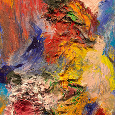 A stencil print made during the COVID lockdown with spray paint. 3 color print with blue, pink, and black as the key layer